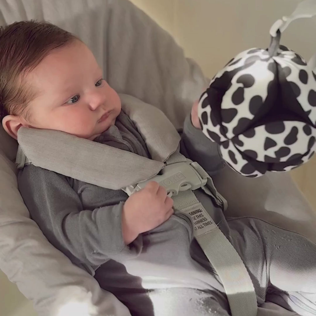 Our Sensory Grasp Ball features our perfectly scaled Dalmatian pattern, precisely designed to support your baby’s developing vision and capture their attention from birth.